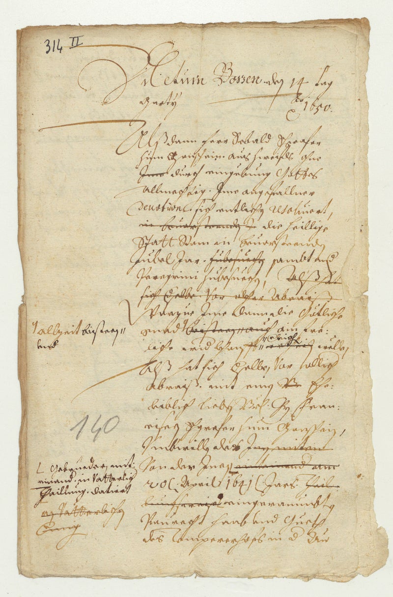 Actum Bozen, den 14 tag martÿ anno etc. 1650 Alß dann herr Sebald Schgrafer zum Monschein aus zweifls ohne durch eingebung Gottes allmechtig Ime angefallner deuotion sich entlichen resoluiert, die heillige statt Rom in bevorsteendem jubel jar sambt anderer peregrini zubesuchen. Warzue ime dann die götliche gnad allzeit beisteen vnd ain freliche widerkhonfft verleichen welle …