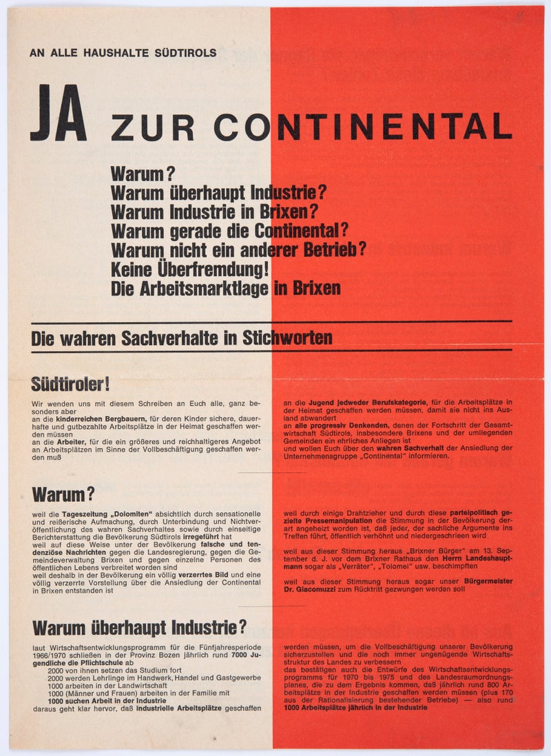 Sobald diese mentalen Barrieren gefallen waren, konnte auch die vergleichsweise schwach entwickelte Südtiroler Industrie dank staatlicher Konjunkturmaßnahmen sowie großzügiger Kredit- und Subventionierung vonseiten der Region beziehungsweise der seit 1972 autonom handelnden Provinz Bozen schrittweise Boden gut machen.