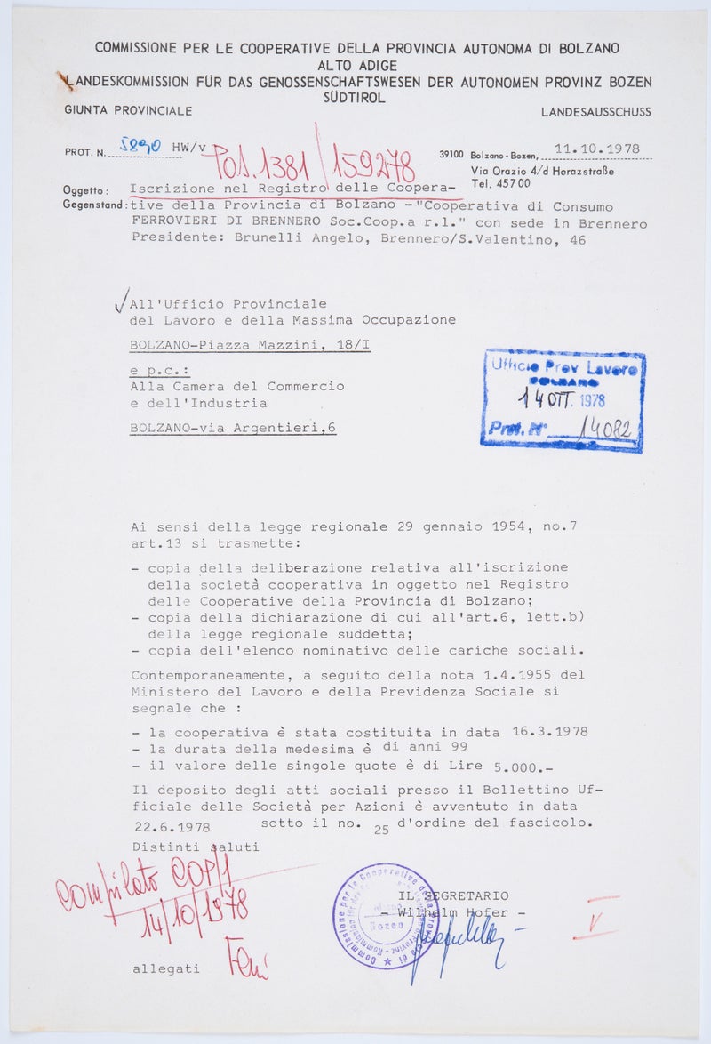 Die Autonome Provinz Bozen führte im Auftrag der Region über die Abteilung Landwirtschaft die Aufsicht über die Genossenschaften und das Genossenschaftsregister; dazu kam als beratendes Organ die Landeskommission für das Genossenschaftswesen. Mit 1. Februar 2004 ging im Zuge einer Flurbereinigung die Verwaltungsbefugnis für das Genossenschaftswesen von der Region auf das Land über; im April 2004 wurde ein eigenes Amt für die Entwicklung des Genossenschaftswesens errichtet.