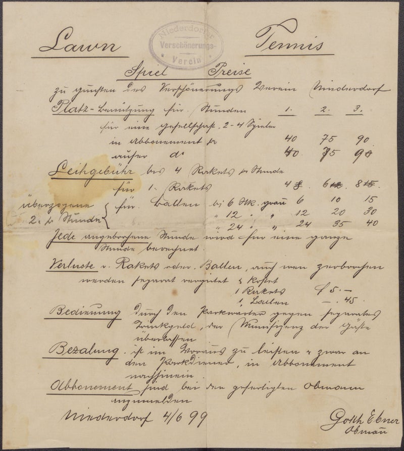 Ende des 19. Jahrhunderts war das Pustertal und besonders die Tourismushochburg Niederdorf eifrig darauf bedacht, mit anderen Feriendestinationen im Tiroler Raum gleichzuziehen und so wurde auch hier bereits 1899 auf Rasen Tennis gespielt. Dadurch kam der Verschönerungsverein Niederdorf offenbar den Ansprüchen und Bedürfnissen eines zunehmend internationalen gehobenen Publikums nach.