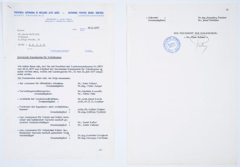 Nach dem Zweiten Weltkrieg musste die Südtiroler Schule völlig neu aufgebaut werden. Trotz Misstrauens von Regierungsseite gelang es dem ad interim eingesetzten Vizeschulamtsleiter („viceprovveditore“) Josef Ferrari, schon im Herbst 1945 die Zusicherung von muttersprachlichem Unterricht durch Muttersprachler/innen zu erhalten, was durch das Pariser Abkommen 1946 rechtlich verankert wurde. Zunächst mangelte es aber an Lehrkräften und geeigneten Räumlichkeiten. Fliegerbomben hatten in Bozen viel Infrastruktur zerstört, aber auch in zahlreichen Dörfern waren Schulgebäude unbenutzbar oder gar nicht vorhanden, kurzfristig konnten oft nur schlecht beheizte, zu dunkle oder zu kleine Schulräume zur Verfügung gestellt werden.