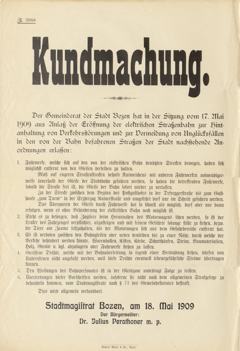 Es zeigt sich auch hier einmal mehr, dass die Mobilität in Bozen auch vor über 100 Jahren ein heiß diskutiertes Thema war.